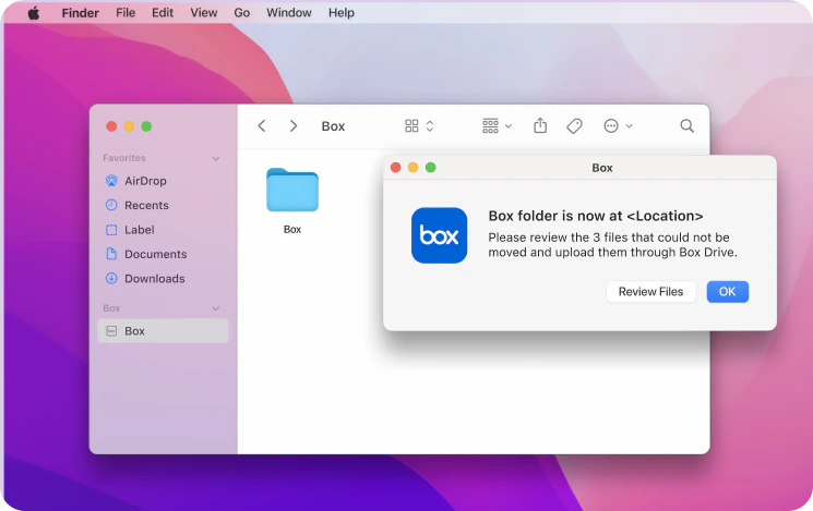 To move the Box folder to an external drive:- Right-click the Box icon in the macOS menu bar.