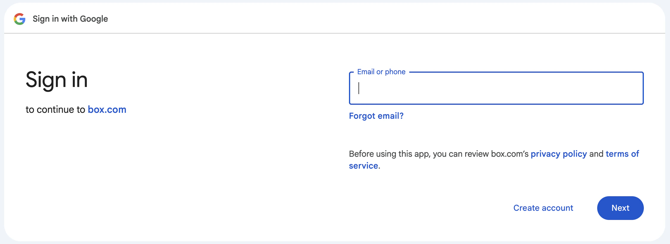 - After you sign in, change your primary Box email address to match your Google account address. Here are instructions for doing that.