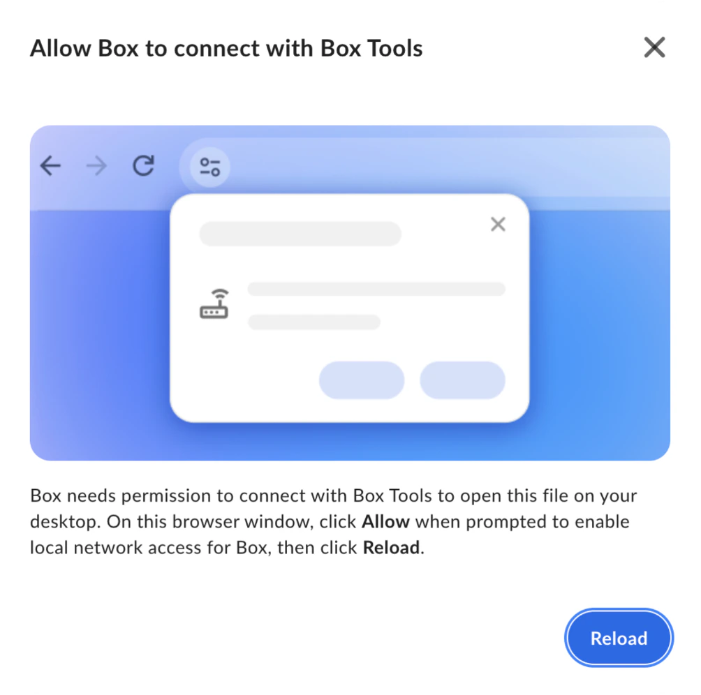 If you are prompted with “Look for and connect to any device on your local network” while using Box, click Allow. To help, we’ve added in-app guidance (for Chrome & Edge) that explains this new browser behavior and walks you through allowing access. Box only communicates with Box Tools on your own device—it does not access other devices on your local network. If you embed the Box Web app as an iframe in a website or webapp, the <iframe> embedding code must include the Chromium parameter**allow="local-network-access*; clipboard-read*; clipboard-write*"** so that the embedded Box Web app can request the Chromium users to grant permissions to access local network or clipboard.